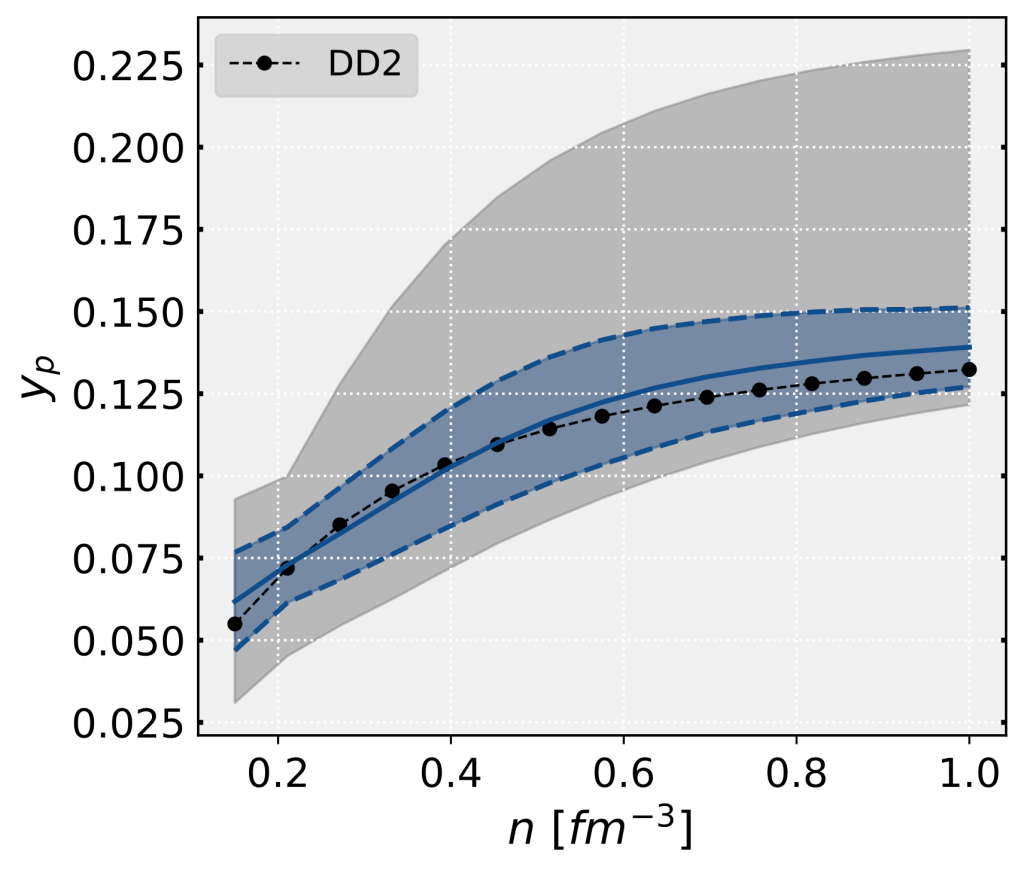 the training dataset [Ymin, Ymax]. The dashed line and dark grey band correspond, respectively, to the mean and the 2σ CI of the training region