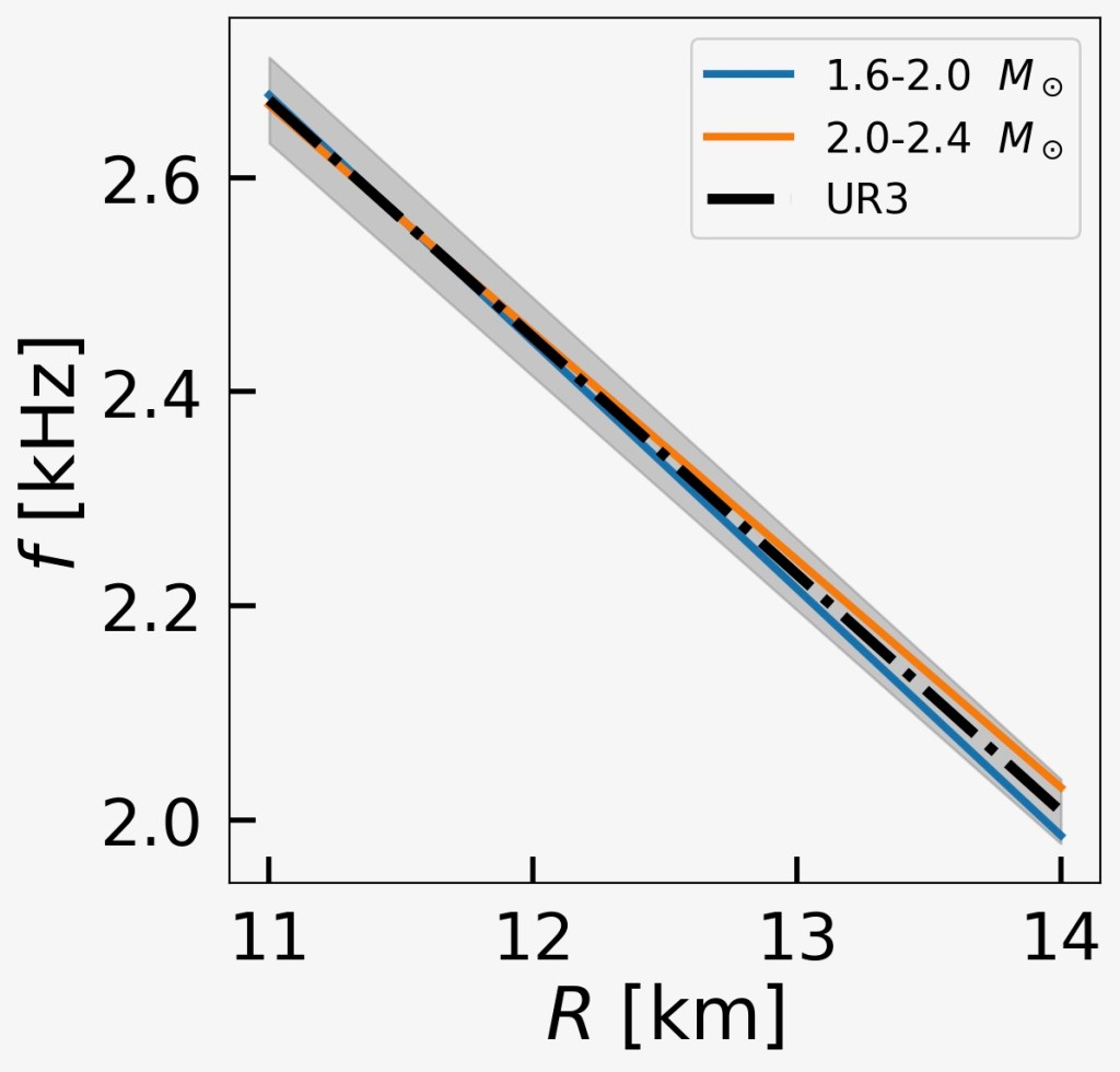 The non-radial oscillations of the neutron stars (NSs) have been suggested as a useful tool to probe the composition of neutron star matter (NSM). With this scope in mind, we consider a large number of equations of states (EOSs) that are consistent with nuclear matter properties and pure neutron matter EOS based on a chiral effective field theory (chEFT) calculation for the low densities and perturbative QCD EOS at very high densities. This ensemble of EOSs is also consistent with astronomical observations, gravitational waves in GW170817, mass and radius measurements from Neutron star Interior Composition ExploreR (NICER). We analyze the robustness of known universal relations (URs) among the quadrupolar ff mode frequencies, masses and radii with such a large number of EOSs and we find a new UR that results from a strong correlation between the ff mode frequencies and the radii of NSs. Such a correlation is very useful in accurately determining the radius from a measurement of ff mode frequencies in the near future. We also show that the quadrupolar ff mode frequencies of NS of masses 2.0 M⊙⊙ and above lie in the range ∼∼ 2-3 kHz in this ensemble of physically realistic EOSs. A NS of mass 2M⊙⊙ with a low ff mode frequency may indicate the existence of non-nucleonic degrees of freedom.