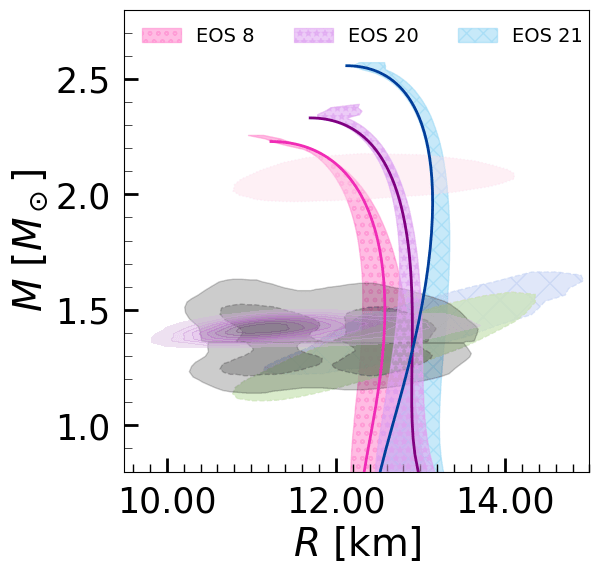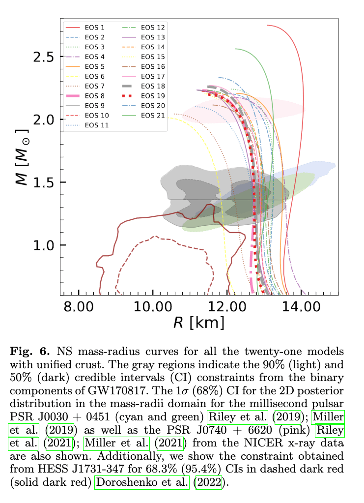 Twenty one unified neutron star EoS were chosen from that dataset, in such a way that a large range of values of the slope of the symmetry energy at saturation is covered. Several quantities are calculated and discussed, such as the the proton fraction and the direct Urca behavior, the density dependence of the speed of sound and the trace anomaly, the crust-core transition properties, the compatibility with astrophysical observations, and the neutron matter properties from χχEFT calculations and pQCD constraints. The spectral representation for all the EOS according to the format proposed in Lindblom 2010 is given, which is a convenient representation to study quasi-periodic oscillations with realistic EOS. It is shown that several of these EoS have in the center of the most massive NS a speed of sound squared of the order of ≲0.5. Three of the EoS satisfy all of the constraints imposed. All these EoS will be made available in the CompOSE platform.
