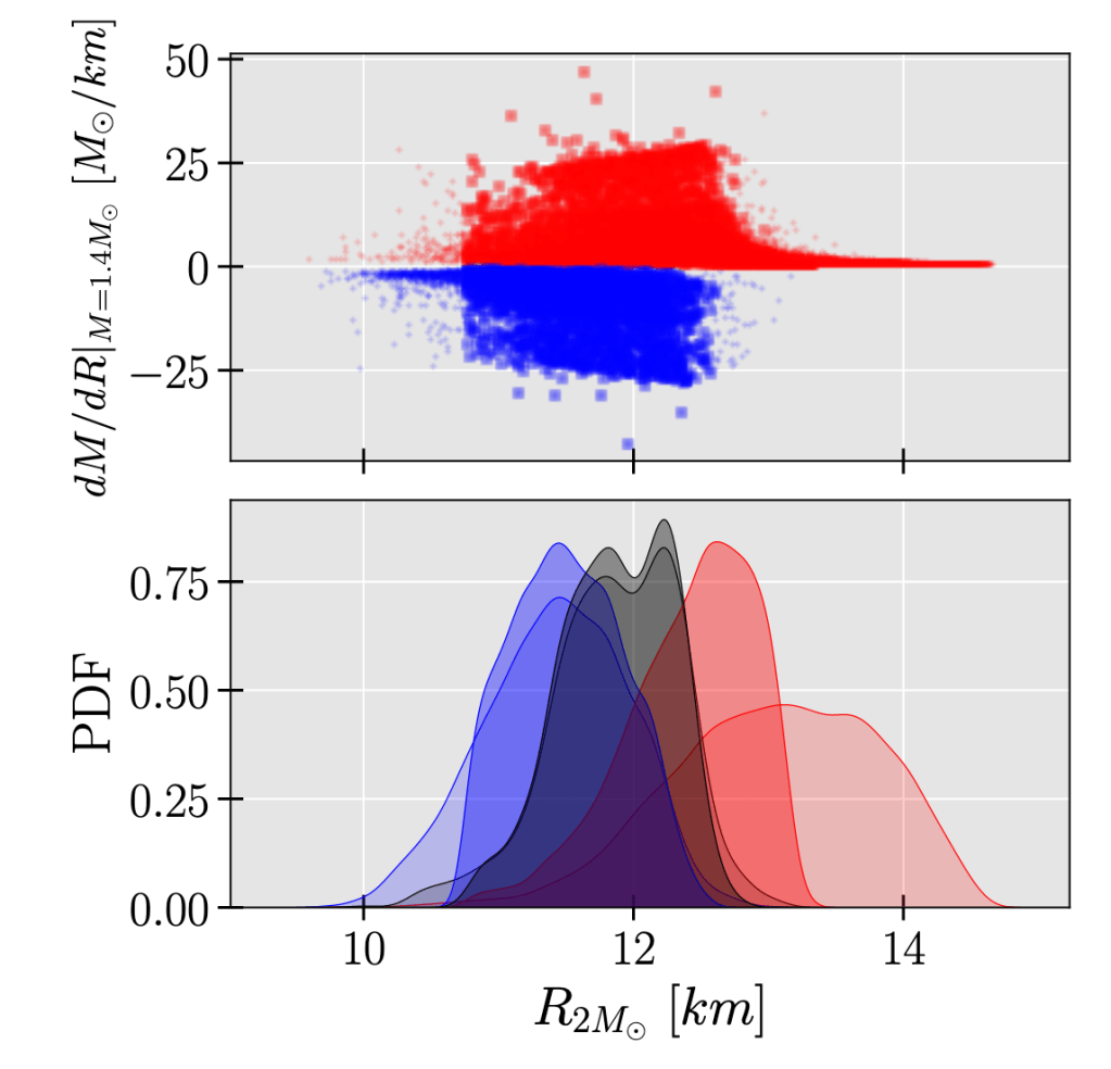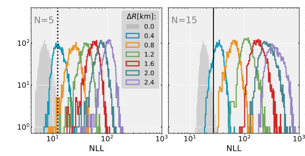 PhysRevC.106.065802 to detect the presence of a large (destabilising) dense matter phase transition in neutron star (NS) observations of masses and radii, and relate the feasibility of detection with parameters of the underlying mass-radius sequence, which is a functional of the dense matter equation of state. Once trained on simulated data featuring continuous M(R)M(R) solutions (i.e., no phase transitions), NF is used to determine the likelihood of a first-order phase transition in a given set of M(R) observations featuring a discontinuity, i.e., perform the anomaly detection. Different mock test sets, featuring two branch solutions in the M(R) diagram, were parameterized by the NS mass at which the phase transition occurs, Mc, and the radius difference between the heaviest hadronic star and lightest hybrid star, ΔR. We analyze the impact of these parameters on the NF performance in detecting the presence of a first-order phase transition. Among the results, we report that given a set of 15 stars with radius uncertainty of 0.2 km, a detection of a two-branch solution is possible with 95% accuracy if ΔR>0.4 km.